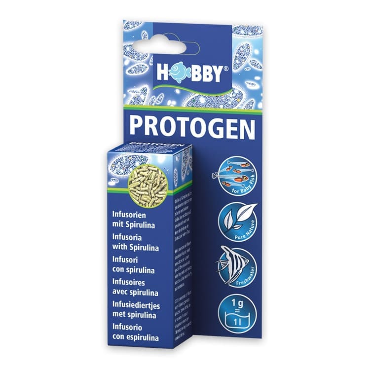 A concentrate of different-sized dried infusoria, which were bred on nutrient earth. When revived with water, they continue to develop and act as a food source for the baby fish.