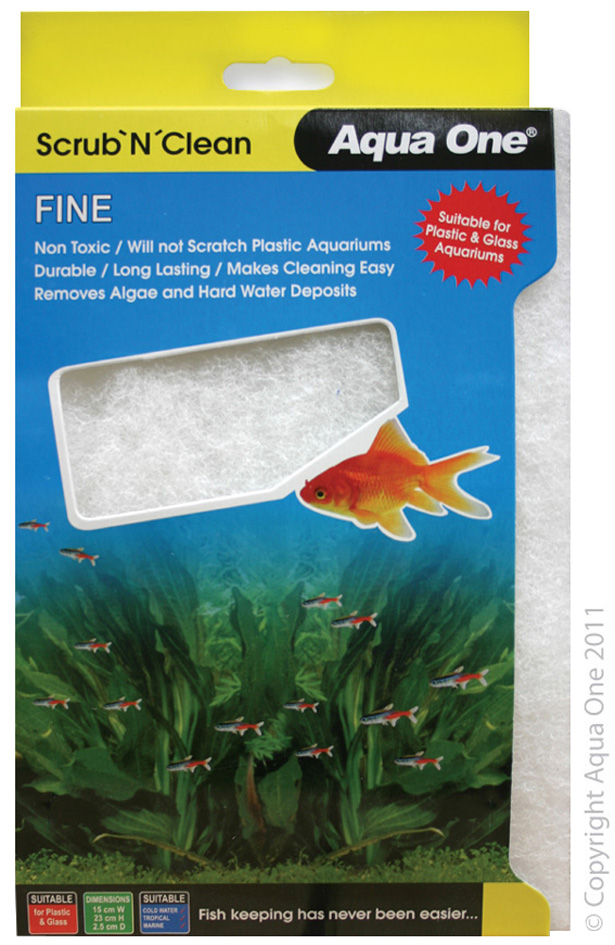 Scrub n Clean Algae Pad- Coarse LargeKeeping the glass on the inside of your aquarium clean not only keeps your tank looking good, but allows you to observe your aquatic pets and ensure their wellbeing at all times.Non toxicDurable & long lastingMakes cleaning easyRemoves algae and hard water deposits23204Scrub n Clean Algae PadFinePlastic & GlassLarge15W x 23H x 2.5D cm