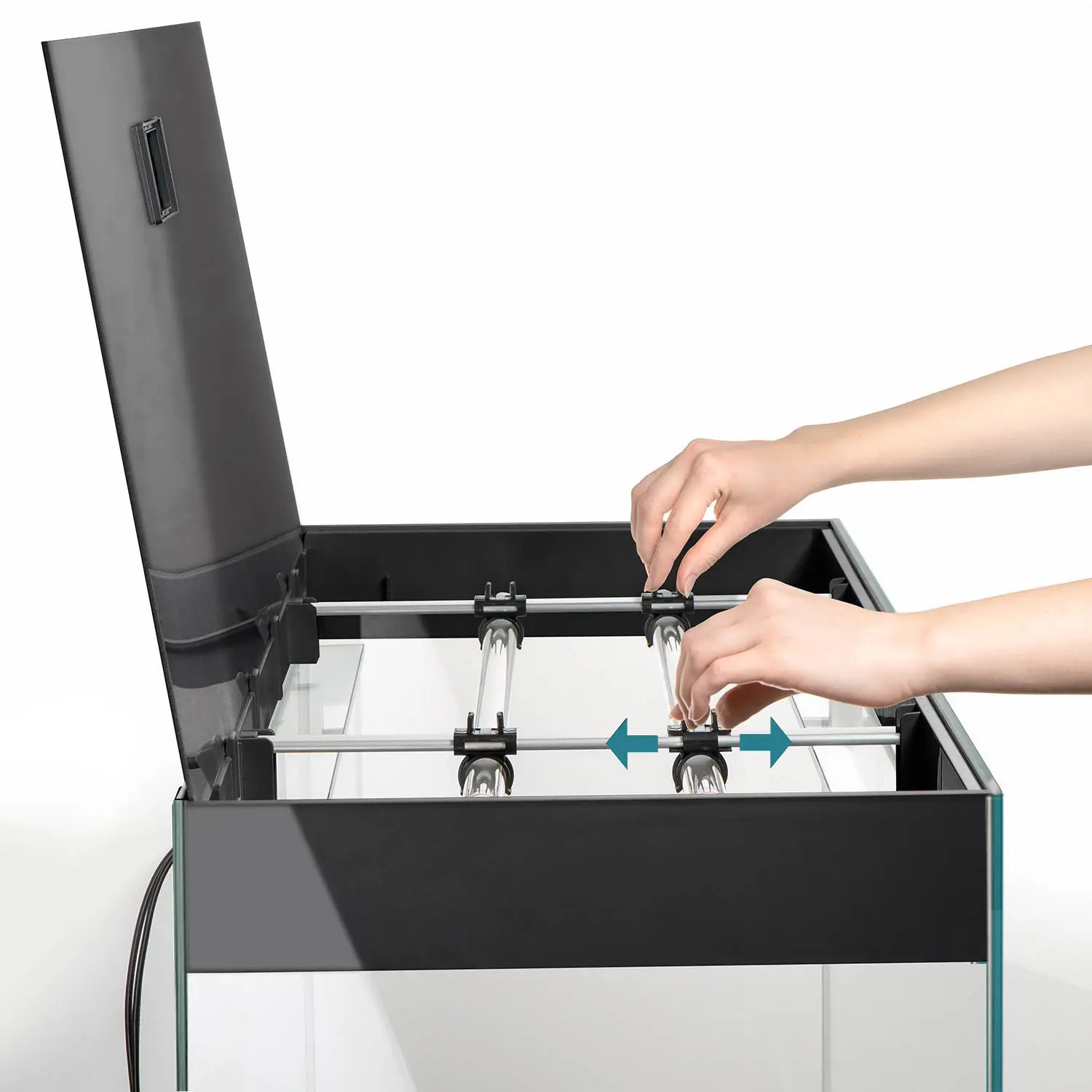 The advanced LED lighting unit built into the lid of the GLOSSY set ensures the proper growth of aquarium plants. At the back of the lid, there are special mounting openings for the unobstructed installation of any type of canister filter or other aquarium equipment.