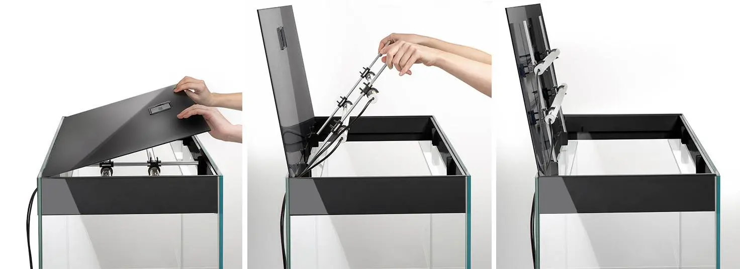 The GLOSSY tank, together with the stand, will form a stylish solid body that sparkles with elegance. an exceptionally stylish appearance lightweight and modern elegant aquarium stands (not included) energy-efficient LED lighting hassle-free installation of filters and accessories
