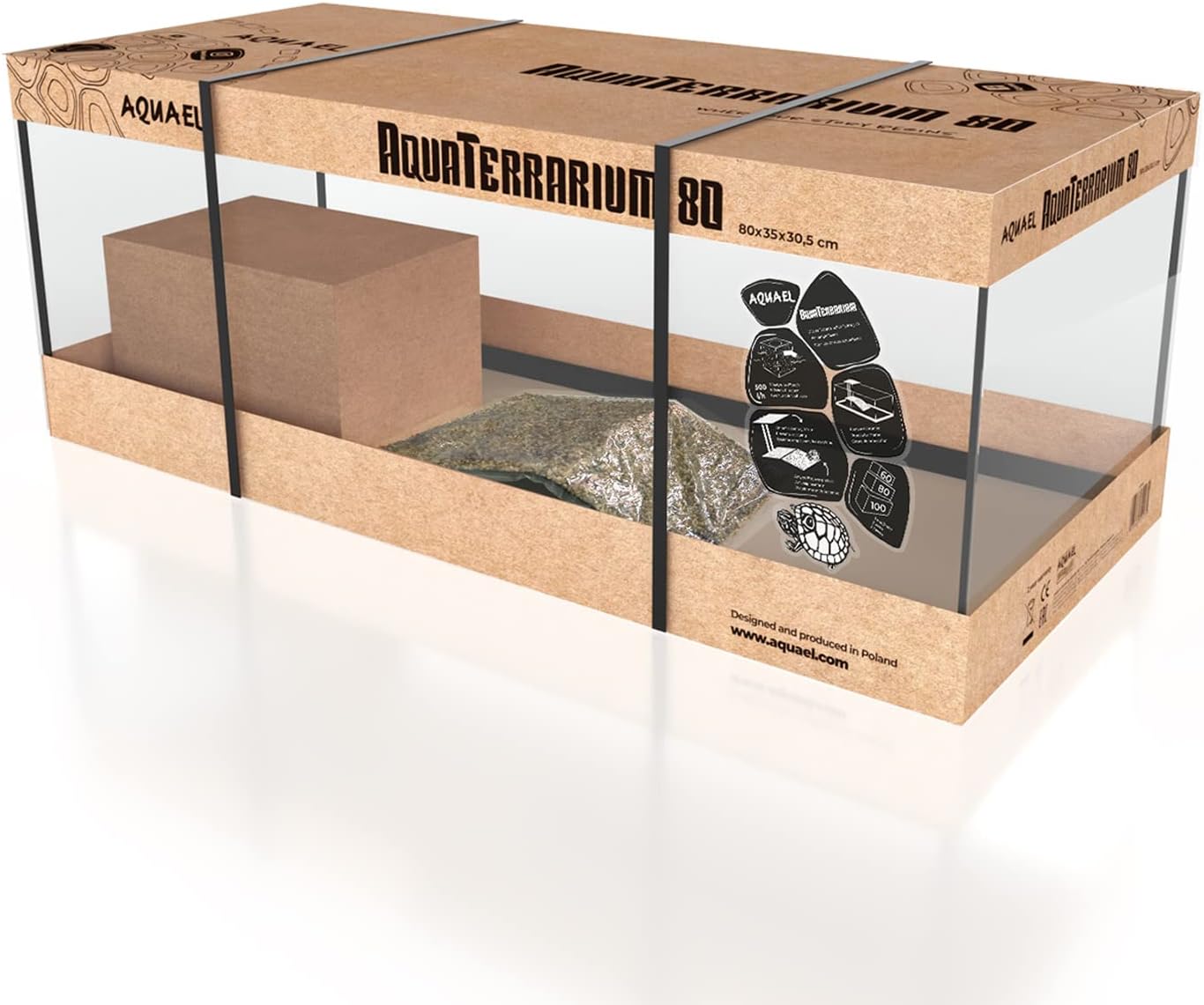 AquaTerrarium is specialized and designed for aquatic animals, such as turtles. It is equipped with the necessary accessories to meet the most important requirements of its future inhabitants. It has an effective filter (500 l / h) and a platform with a non-slip surface of natural gravel. The lower frame protects the bottom from damage. Modern design and aesthetic workmanship make it an interesting element of the decor of any room.