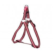 Fabric harness, two-coloured, with a contrasting strip in the middle and orated with a soft bone charm. Composition : 100 % nylon Care : Machine washable (30°).