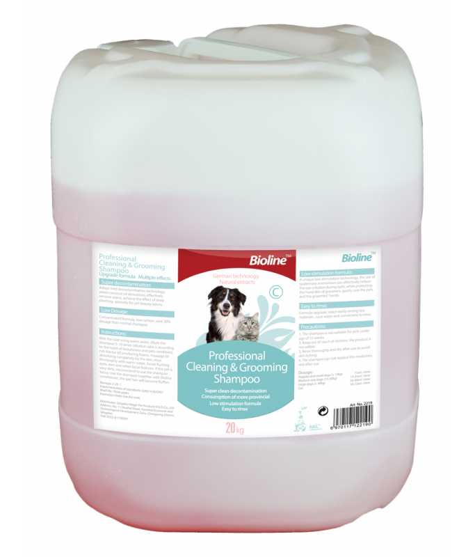 Bioline Professional Cleaning & Grooming Shampoo is designed for both dogs and cats, offering a superior cleaning solution for pet beauty salons and home grooming. This 20kg bulk shampoo is formulated to deliver exceptional decontamination and deep cleaning with minimal effort. Its low-stimulation formula ensures a gentle yet effective clean, making it ideal for regular use on pets of all types.