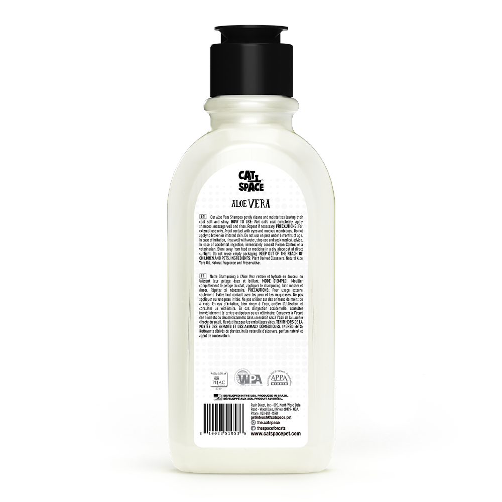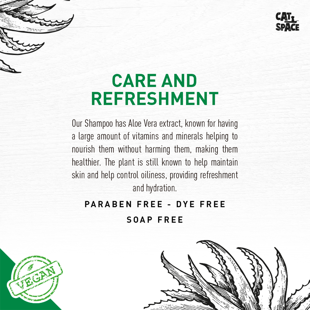 Cat Space dye Free Aloe Vera shampoo gently cleans and moisturizes even the stinkiest of coats while leaving the fur moisturized, tangled free and silky.