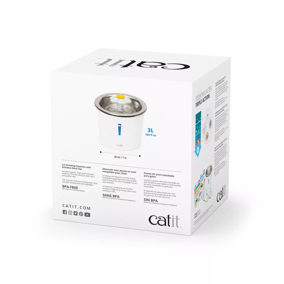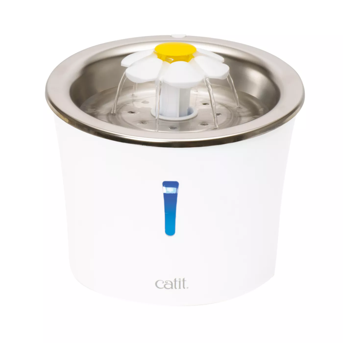 Packing all original Flower Fountain features, as well as a hygienic, premium-quality stainless steel top, the Catit Stainless Steel Flower Fountain is more than qualified to keep your cat hydrated 24/7. Its blue LED backlit water level window, 3 water flow settings, ergonomic build and large water reservoir are extremely practical in use.