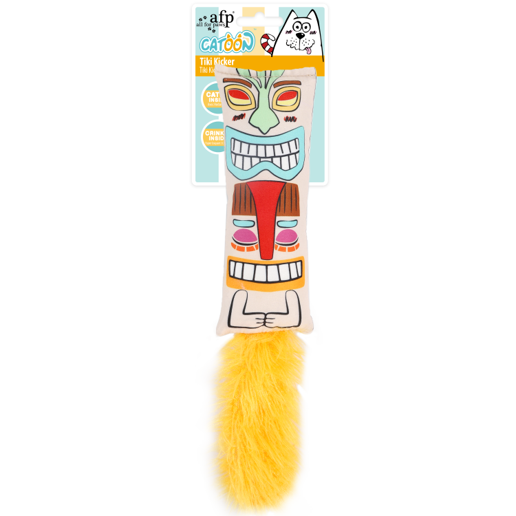 Engage your feline with the Catoon – Tiki Kicker Cat Toy! This catnip-filled plush features a crinkle sound & colorful Tiki design for multi-sensory, interactive play. Perfect for kicking, cuddling & fun!