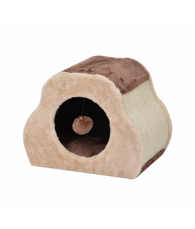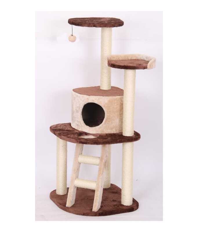 Cat tower with scratching tree, simply designed to build easily, normally soft plush, enough rest room for condo makes pet play easily, plastic brush to make the scratch easy.
