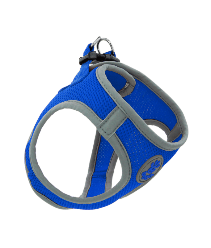 DOCO Athletica QUICK FIT Mesh Harness, fray resistant 3mm thick high dense air mesh that provides ultra comfort on buddy’s neck and chest area. Less pressure around neck than classic collars for easier training and outdoor activities. Reflective piping throughout the entire vest harness for additional safety in darkness when walking the dog.