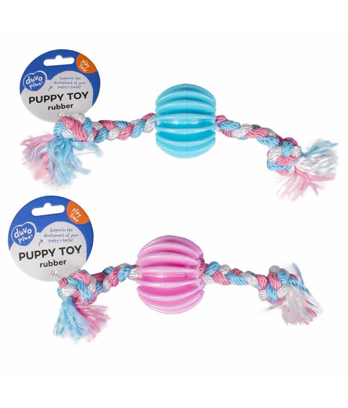 The Duvo+ Puppy TPR Treat Ball with Cotton Rope is a rubber chew toy designed for puppies, providing both fun and dental health benefits. Here are the key features: