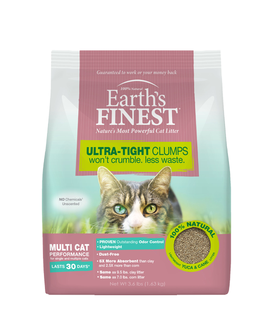 Performance is in our roots. Earth’s FINEST harvests the power of plant roots and fibers to create a next-level, ultra-lightweight cat litter that absorbs in seconds, controls all litter box odors, and forms ultra-tight clumps on contact. Our natural cat litter is made of renewable Earth-grown ingredientsyuca and caneto give your cat a familiar feel under their paws.