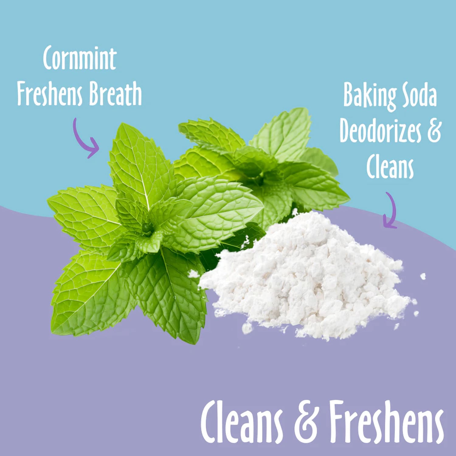 Purified water, sodium bicarbonate (baking soda), vegetable glycerin, caprylyl glycol, potassium sorbate, cornmint oil, phenoxyethanol.