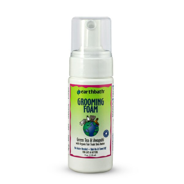 Earthbathâ® Waterless Grooming Foam For Cats & Kittens, Green Tea Leaf Essence, Made In Usa, 4 Oz Pump