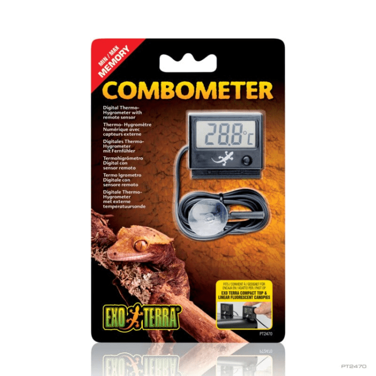 - The Exo Terra Digital Thermo-Hygrometer is a 2-in-1 precision instrument, equipped with a remote combined sensor for accurate temperature and humidity indication.