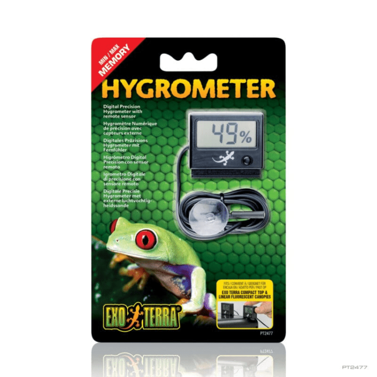 The Exo Terra Digital Hygrometer is equipped with a remote sensor for accurate measurement and durability.