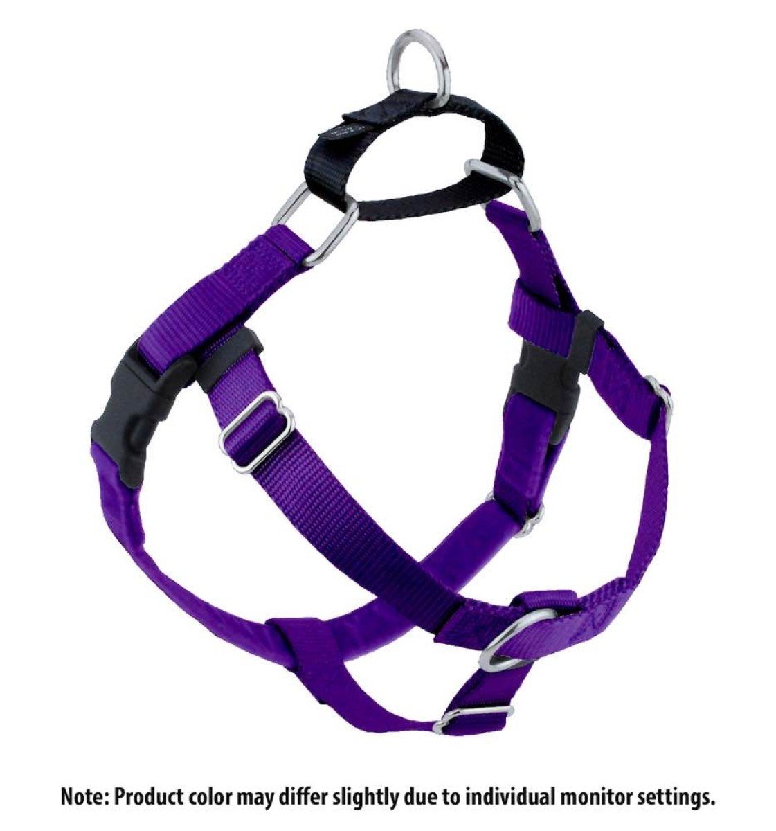 The Freedom No-Pull Harness gently tightens around the chest to minimize pulling. It features a front structural ring for optional dual leash attachment to control and redirect your dog’s attention for training. The Swiss velvet-lined chest strap helps prevent rubbing, while rustproof stainless steel hardware and strong nylon webbing ensure durability. Fits dogs from 14 to 250+ lbs; ideal for boisterous dogs and sighthounds.