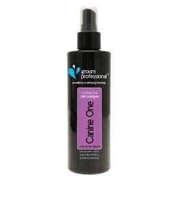 Groom Professional Canine One is a popular cologne, with a scent based upon that of a popular fine fragrance. Ingredients include peach, lychee, jasmine, madonna lily, and musk. Spray directly on the coat between baths to freshen your pet. Grooming Tip – Spray onto a grooming brush to brush directly through the coat. Unisex scent suitable for puppies over 6 weeks.