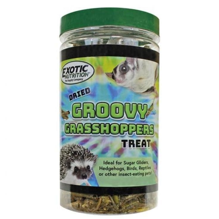 Exotic Nutrition’s Groovy Grasshoppers Treat (40 g.) are gut-loaded dried grasshoppers that are first frozen, then freeze dried to maintain their nutritional value. A great source for protein … and they store for a year or longer without refrigeration. Excellent for Sugar Gliders, Hedgehogs, Wild Birds, Chickens, Turtles, Tropical fish, Reptiles and other insect eating animals. No refrigeration necessary! Amount: 40 g.