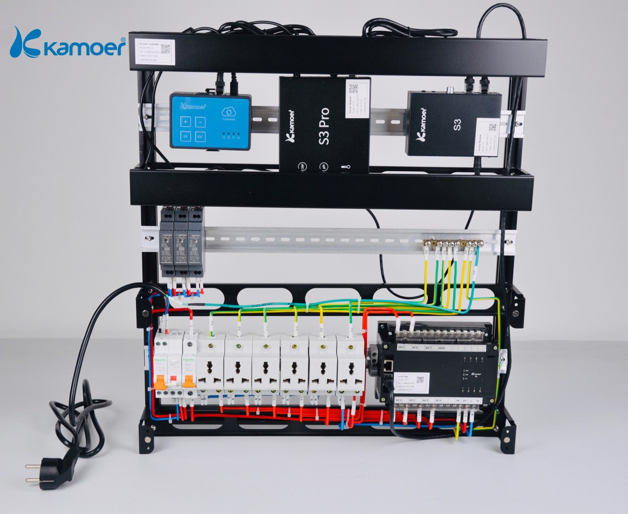 Qijian smart version is a suite of functions such as water change, temperature detection,liquid level detection, humidity detection, pH detection, conductivity and salinity detection,8-way smart socket, etc. Users can view the real-time value and the historical value of thesensor through iOS or Android App. User can control the switch of the smart socket, set theplan parameters of the water change. When the device is powered down or the sensor isabnormal, the alarm information can also be pushed to the mobile app. 1. KICC controller2. S3 EC sensor module3. Sockets4. S3 basic sensor module 5. Main power switch6. Power supply for P8 7. P8 smart socket control module8. Power supply for modulesKICC controllerIt is the brain that runs various functional modules of scheduling, including data storage,communication interface, network communication, and function scheduling.2. S3 EC Sensor ModuleIt contains 1 channel pH, 1 channel EC, 1 channel temperature sensor, which can detectthe water quality. You can detect the real-time value of these sensors through the mobileapp. When the value is abnormal, you can push the alarm information to the mobilephone.3. Sockets8 independent sockets controlled by P8 smart socket control module.4. S3 basic sensor moduleIt includes 5 level sensors, 2 temperature sensors, 1 temperature and humidity sensor.Through these sensors, it can monitor the liquid level of fish tank, hydration bucket andwaste liquid tank, monitor the temperature and humidity of the environment, and fish tank.Temperature, etc., the real-time and historical values of these sensors can be viewedthrough the mobile app.5. Main power switchAfter the device is connected to the power supply, the switch needs to be turned on, andeach module can be powered on.6. Power supply for P8 smart socket control modulePowering the smart socket control module and the 8-way socket, turning on the switch,the smart socket control module is powered, if the smart socket is not used, the switchcan be turned off separately.7. P8 smart socket control moduleThe socket switch can be controlled on time by the mobile phone App setting plan, andthe socket and the sensor can be set to be linked, and the socket performs a certainaction when the sensor reaches a certain value.8. Power supply for modulesIt includes 2 5V DC power supplies and 2 12V DC power supplies.