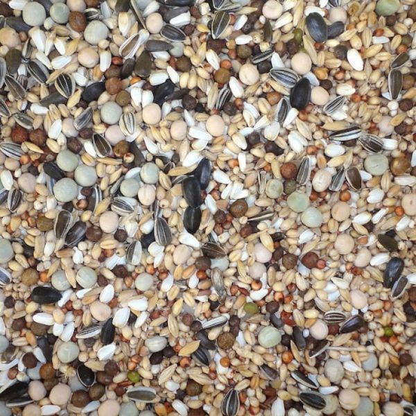 White Millet, Canary Grass Seed, Small Yellow Millet, Oat Groats, Red Millet, Flax Seed, Niger Seed, Ground Corn, Gelatin, Toasted Wheat Flakes, Dehulled Soybean Meal, Corn Gluten Meal, Honey, Corn Sugar, Dehydrated Carrots, Dehydrated Parsley, Ground Wheat, Ground Rice, Calcium Carbonate, Wheat Middlings, Soy Oil, Ground Oat Groats, Dicalcium Phosphate, Ground Flax Seed, Salt, Algae Meal (source of DHA), Vitamin A Supplement, Choline Chloride, Wheat Germ Meal, L-Lysine, Dried Beet Pulp, Brewers Dried Yeast, Sun-cured Alfalfa Meal, Fructooligosaccharide, Dried Whole Egg, Yeast Extract, DL-Methionine, Mixed Tocopherols (a preservative), Titanium Dioxide, Yucca Schidigera Extract, Propionic Acid (a preservative), Vitamin E Supplement, Vitamin B12 Supplement, Riboflavin Supplement, Ferrous Sulfate, Zinc Oxide, Manganous Oxide, Menadione Sodium Bisulfite Complex (source of vitamin K activity), Niacin, Rosemary Extract, Citric Acid, Manganese Proteinate, Copper Proteinate, Cholecalciferol (source of vitamin D3), Calcium Pantothenate, , Pyridoxine Hydrochloride, Thiamine Mononitrate, Copper Sulfate, Beta-Carotene, Canthaxanthin, Folic Acid, Calcium Iodate, Biotin, Cobalt Carbonate, Sodium Selenite, Dried Bacillus licheniformis Fermentation Product, Dried Bacillus subtilis Fermentation Product, FD&C Yellow #5, FD&C Red #40, FD&C Blue