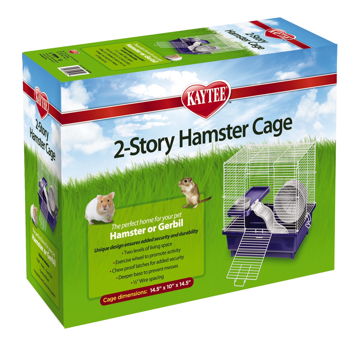 The 2-Story Hamster Home is the perfect beginner cage for your Hamster or Gerbil. The Kaytee 2-Story Hamster Homes snap together in minutes without the need for tools. Quality construction features chew proof coated wire and stain resistant plastic parts. This home offers plenty of room for your favorite little critter to play.