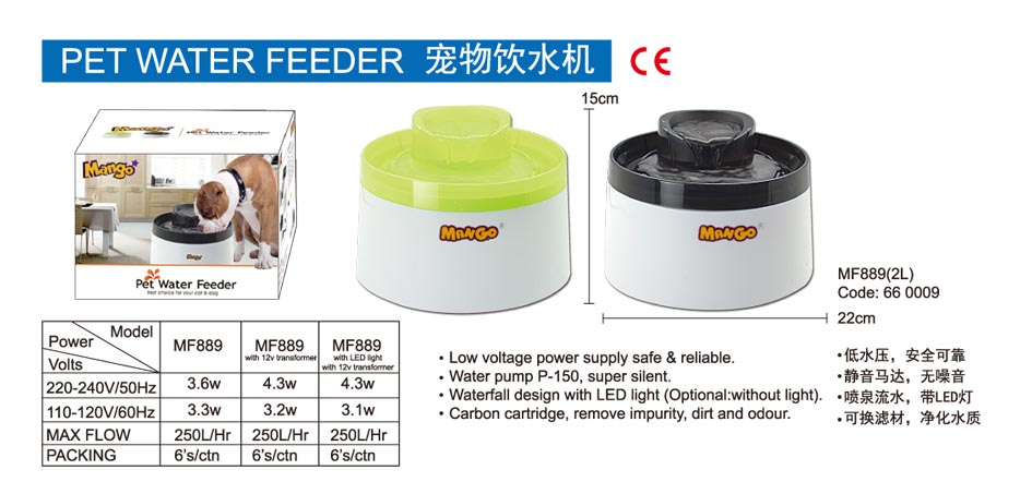 KW Zone Mango Pet Water Feeder Fountain With Light And Transformer