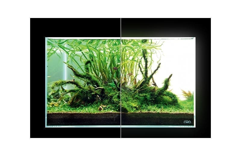 LIGHT SCREEN is an LED back screen installed with hooks on the rear of aquarium tanks providing a white background. Includes a blue-gradation film for a beautiful blue gradient. Features a dimmer switch to adjust brightness for photography and aquascaping.