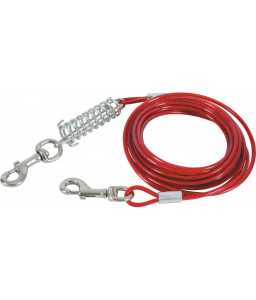 Pado Dog Tie Out Cable with Spring 5mm x 500cm Cable and spring 5 meters. Red color. A common attachment system with spring allows active dogs to move outside under the supervision of their master and without risk of running away. The spring system & PROTECT DOG > absorb violent shocks and avoids strangulation of the dog. The dog must have a shaded area during the summer and must always have a bowl of clean and fresh water at his disposal. Never tie an animal permanently and this is for its well-being, steel cable with galvanized zinc protected by a PVC sheath resistant to UV Pvc sheathing is resistant to UV and without seams. Rust resistant product. Product for animals only. Keep out of the reach of children Durable metal clips ensure quick, easy connections Cable dimensions: 5mm x 5 m.