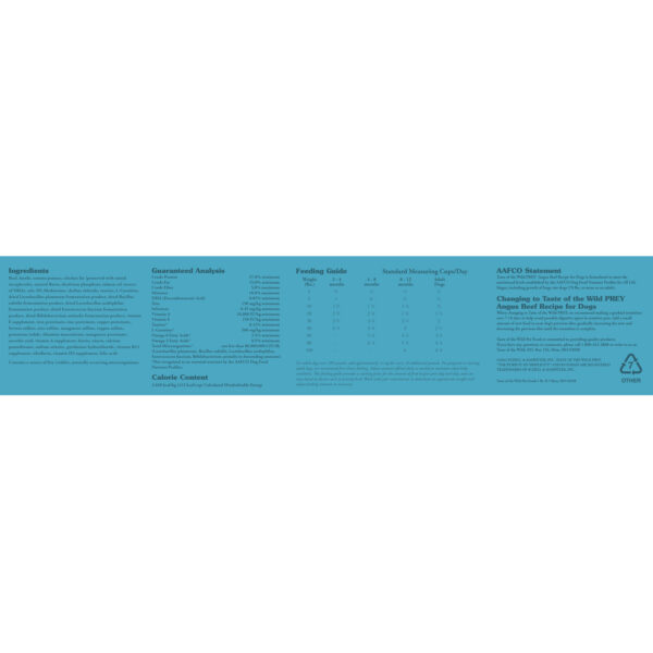 Taste of the Wild PREY Angus Beef Formula for Dogs is formulated to meet the nutritional levels established by the AAFCO Dog Food Nutrient Profiles for All Life Stages, including growth of large size dogs (70 lbs. or more as an adult).