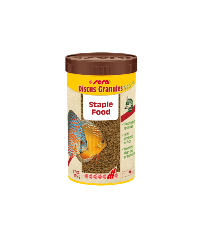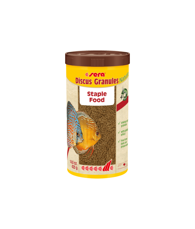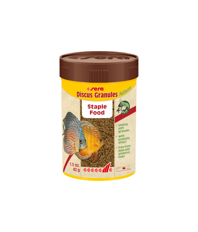 sera Discus Granules Nature is the staple food without dyes and preservatives consisting of gently manufactured soft granules for all discus fish (including fry) and other demanding ornamental fish.