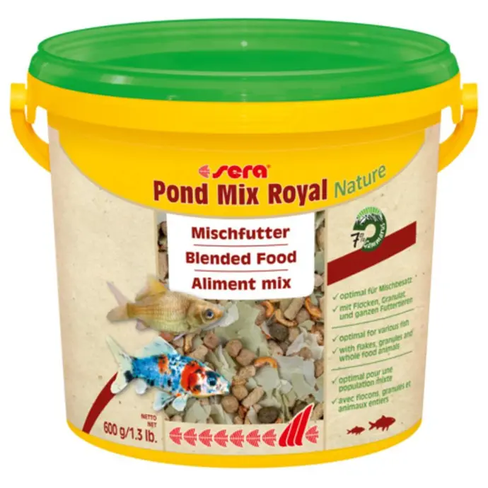 Sera Pond Mix Royal Nature is the staple food consisting of carefully processed flakes, granules and whole gammarus for feeding in ponds with various fish throughout the year. Of course free from dyes and preservatives.