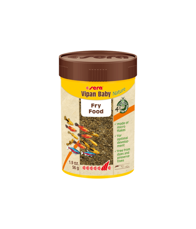 sera Vipan Baby Nature is the fry food without dyes and preservatives consisting of carefully manufactured micro flakes for all juvenile fish eating at the water surface.