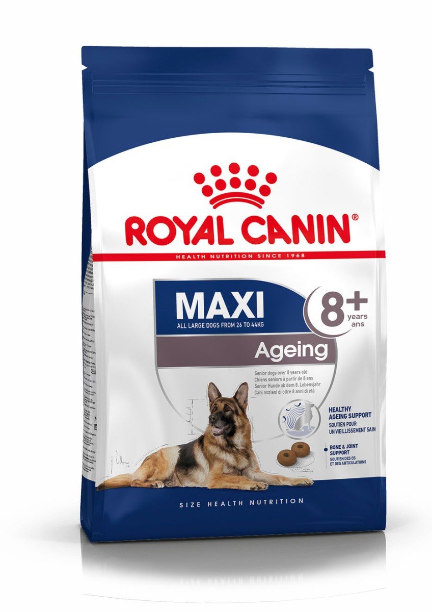 Your large dog?s overall health is going through many changes now that it has fully matured ? and signs of ageing may be starting to show. Re-addressing your dog?s feeding regime is particularly important at this stage of its life because its diet needs to support its general health and fitness as it enters into its senior years. ROYAL CANIN? Maxi Ageing 8+ is suitable for adult dogs that weigh between 26kg- 44kg and is specially formulated with all the nutritional needs of your large dog in mind. Large dogs can tend to gain weight more easily at this age because they can be less active than they used to be and therefore they won?t burn off as much energy. That?s why it?s important to manage your large dog?s daily intake allowance effectively so that it can carry on ageing comfortably. This exclusive formula also includes very high quality proteins such as L.I.P, known for their high digestibility, as well as a balanced supply of dietary fibre to support colon health.