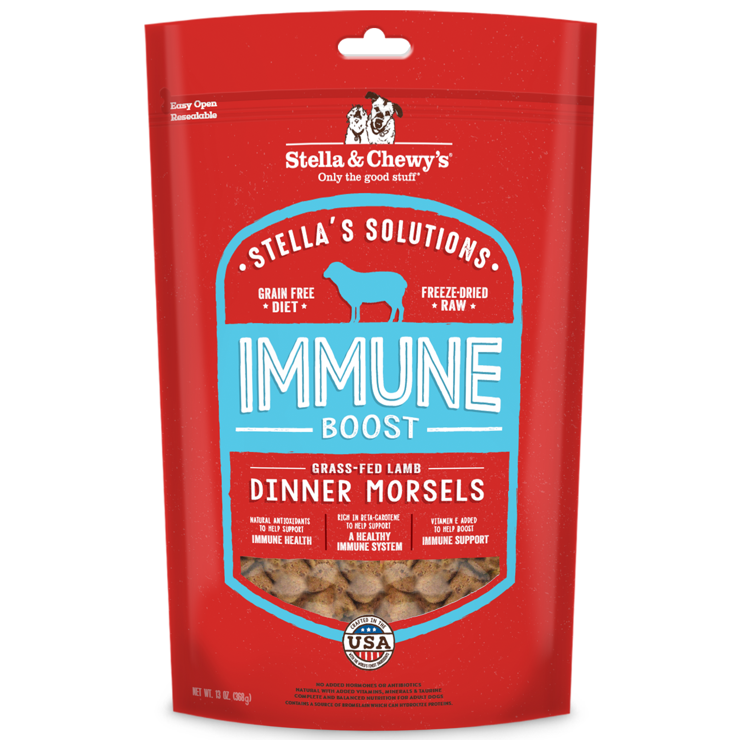 Stella & Chewy’s Immune Boost Grass Fed Lamb Recipe are special and unique recipes that provide best-in-class nutrition as well as an efficacious boost to help proactively support your pet’s unique needs and overall health! Each unique diet provides great complete and balanced nutrition, but also includes a unique combination of active ingredients that purposefully unlock your dog’s full potential.