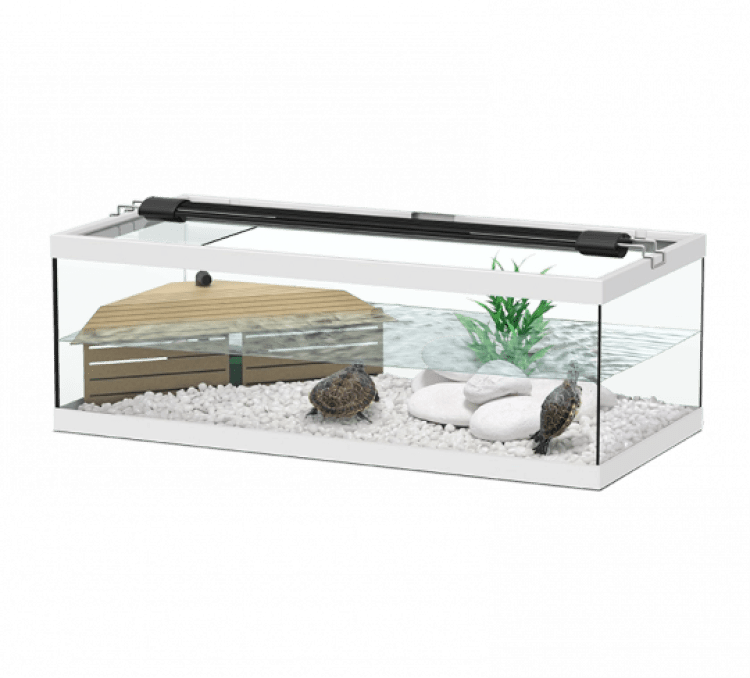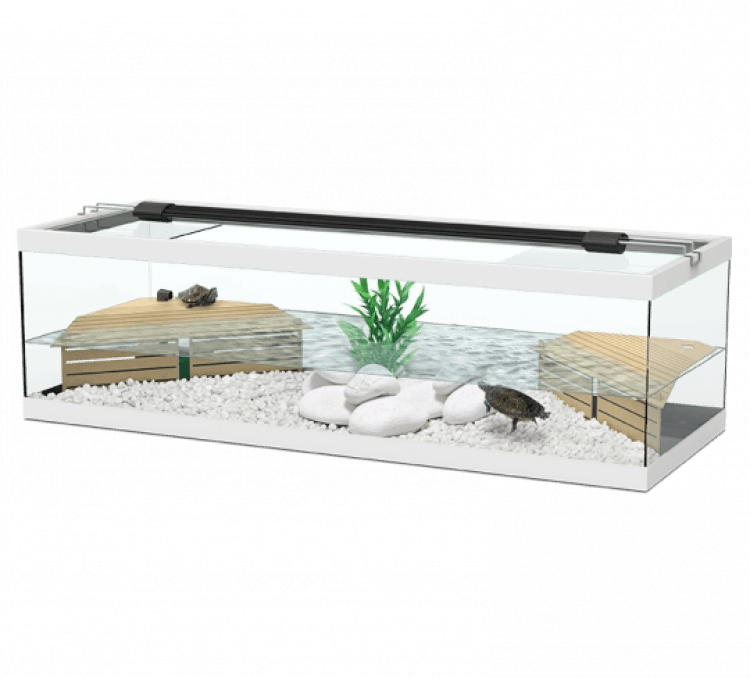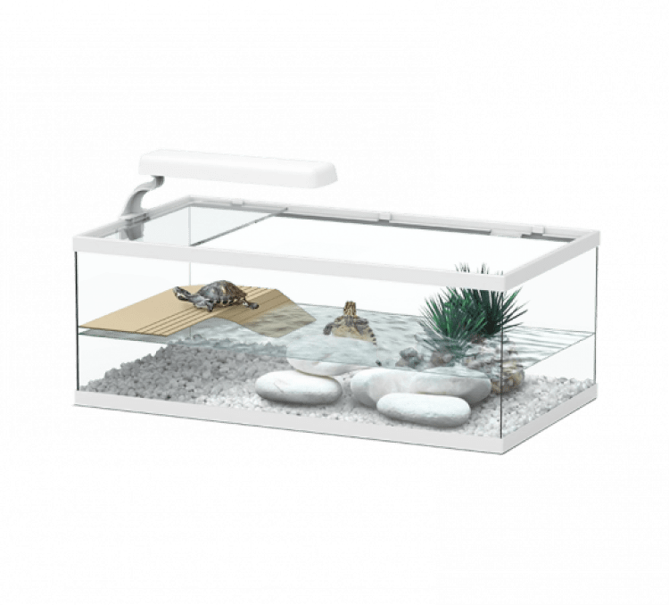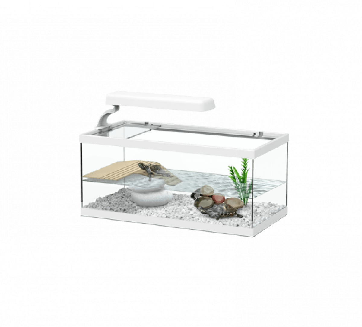 The TORTUM tanks are especially designed for turtles and includes all the necessary elements for creating a balanced habitat. It’s made in glass and have a protective glass lid on top. They also include a ramp so that the turtles can take shelter in a dry area and a TC-500 pump for filtration of water. 16W LED light sold separately.