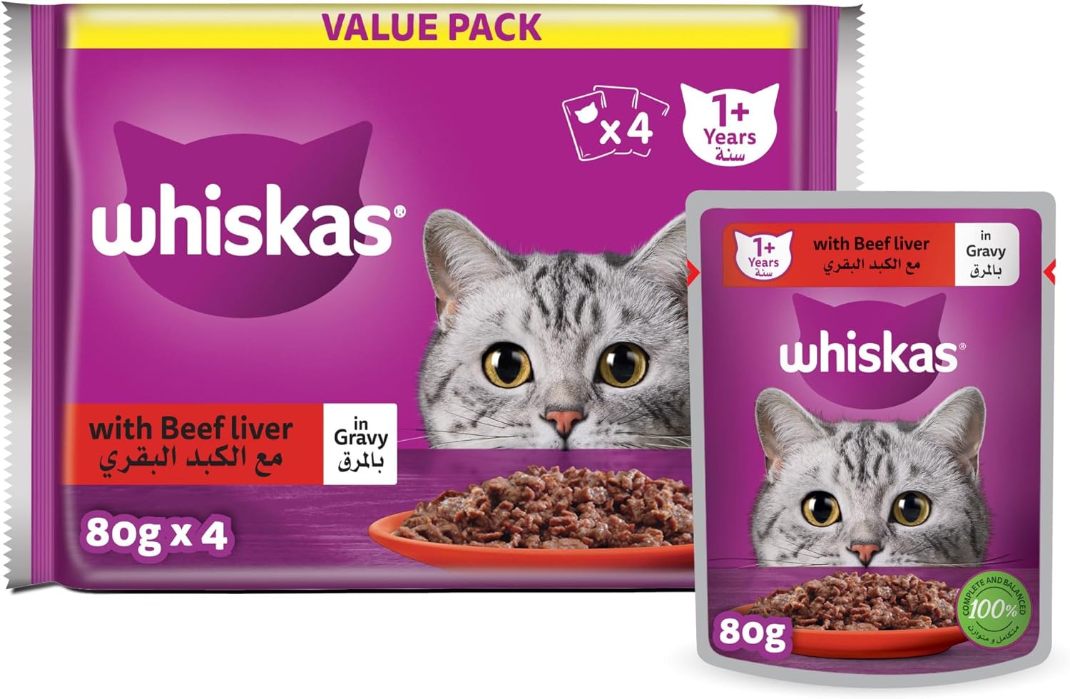Whiskas Beef Liver in Gravy Wet Cat Food (Pack of 4 x 80g)