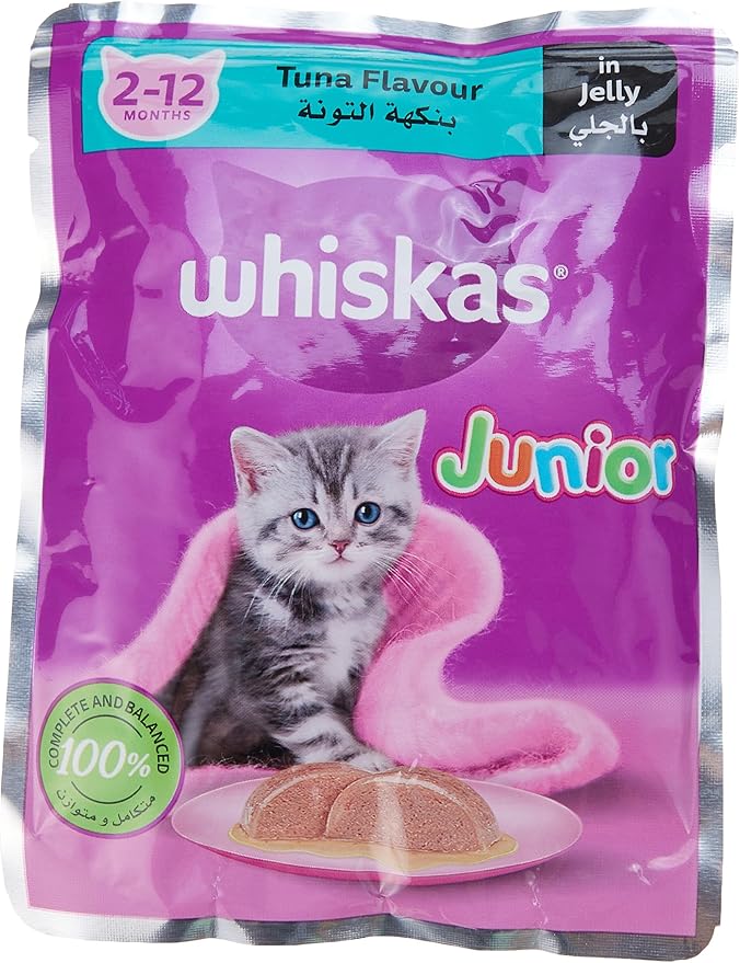 Whiskas Junior Tuna Wet Cat Food is a complete and balanced meal specifically formulated for kittens aged 2 to 12 months. Each 80g pouch provides the essential nutrients required for healthy growth and development. WHISKAS.COM.PH Key Benefits: High-Quality Protein: Made with real fish, offering high-quality protein to support muscle development and overall health. Essential Nutrients: Enriched with 41 essential nutrients, including DHA and Omega-3 fatty acids, to support healthy brain and vision development. Immune System Support: Packed with antioxidants to promote a healthy immune system and support natural defenses. Digestive Health: Contains natural fibers to support digestive health, ensuring your kitten’s system functions smoothly. Bone and Teeth Development: Enriched with calcium to help build strong teeth and bones.